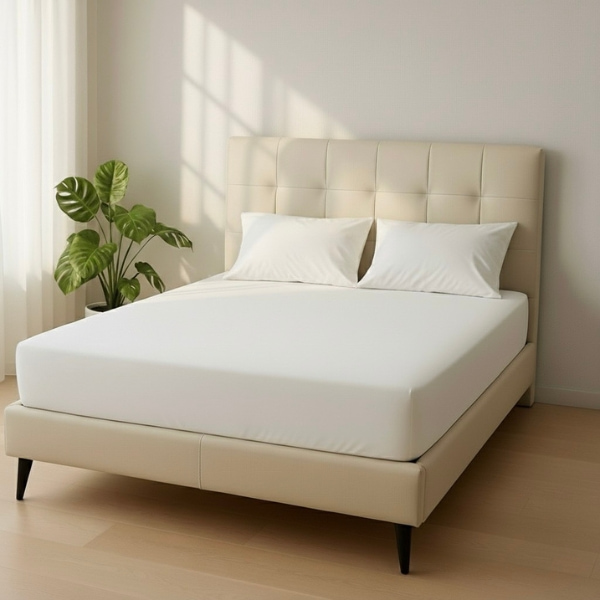 床包式全包覆+內束加高至 38cm。薄墊、厚墊都能服貼固定,翻身不移位、床面更平整,換洗也更輕鬆。
